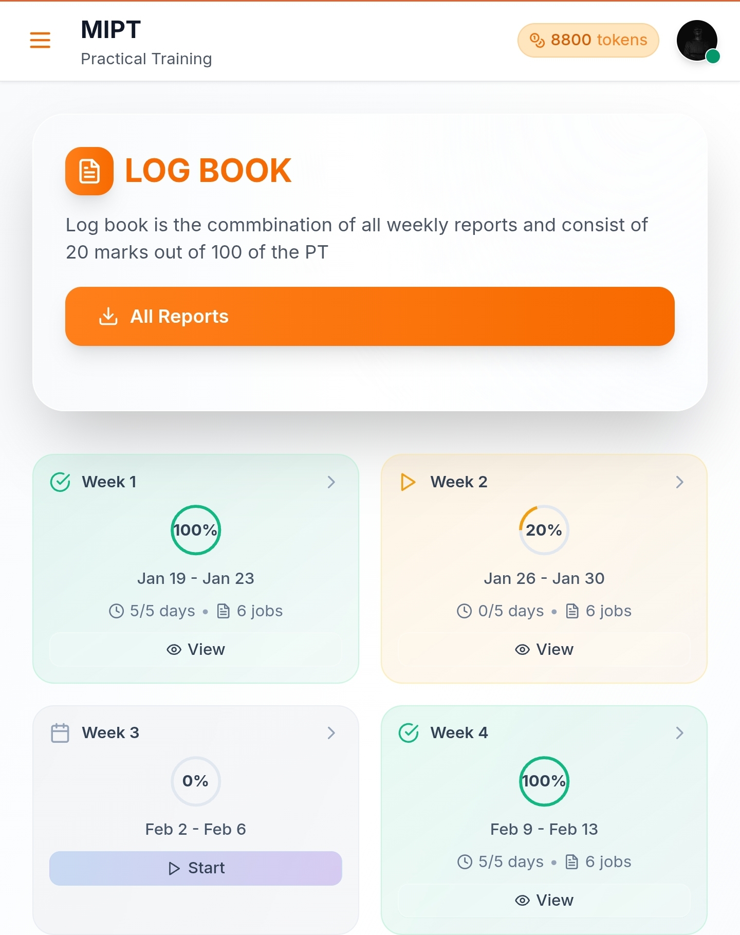 MiPT is an innovative platform designed to simplify and enhance your Practical Training (PT) experience. Whether you're documenting daily field activities, generating weekly reports, or preparing your final PT logbook, MiPT makes it fast, easy, and professional—directly from your phone.
